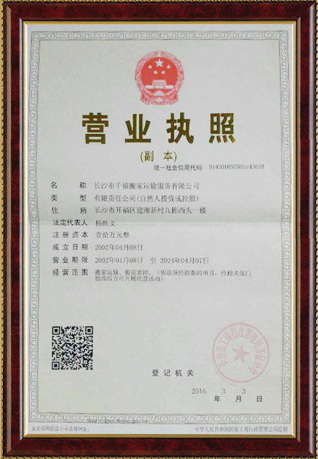 長沙市千禧搬家運(yùn)輸服務(wù)有限公司